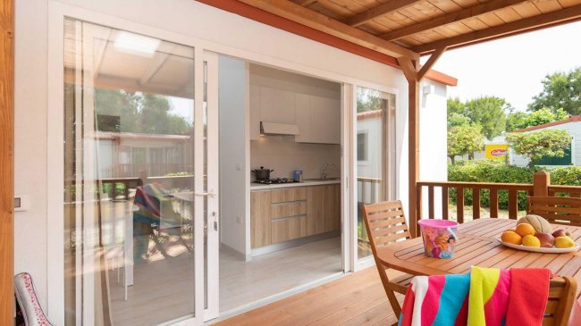 Sono composte da area giorno, angolo cottura attrezzato, bagno con doccia e veranda esterna. Le tipologie si differenziano per numero di camere e tipologie di letto.